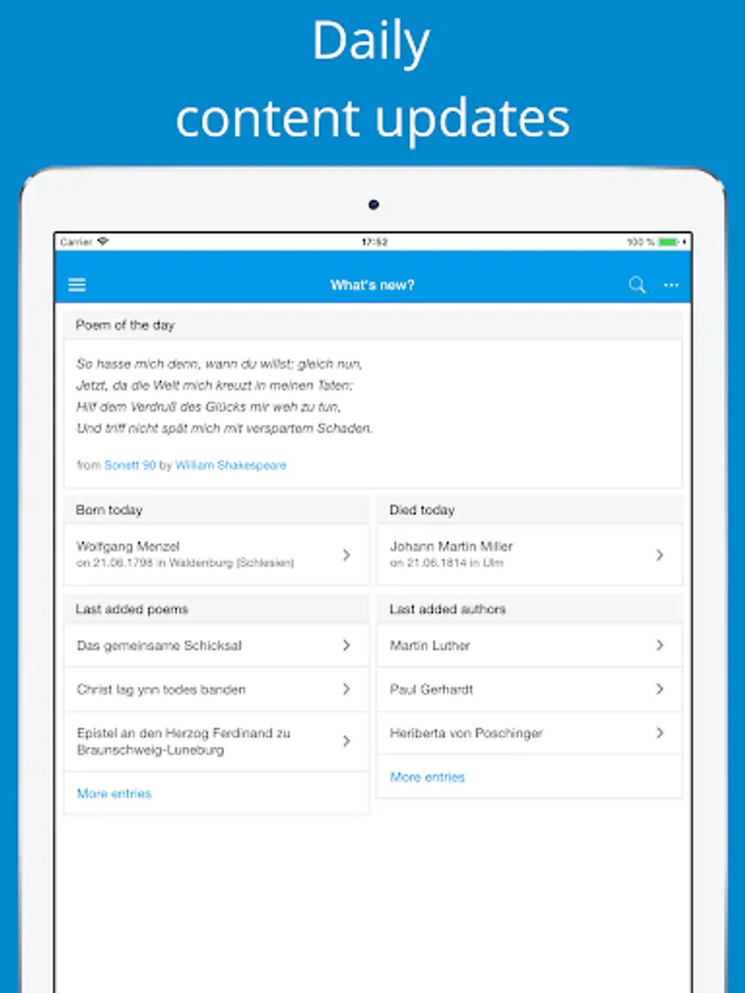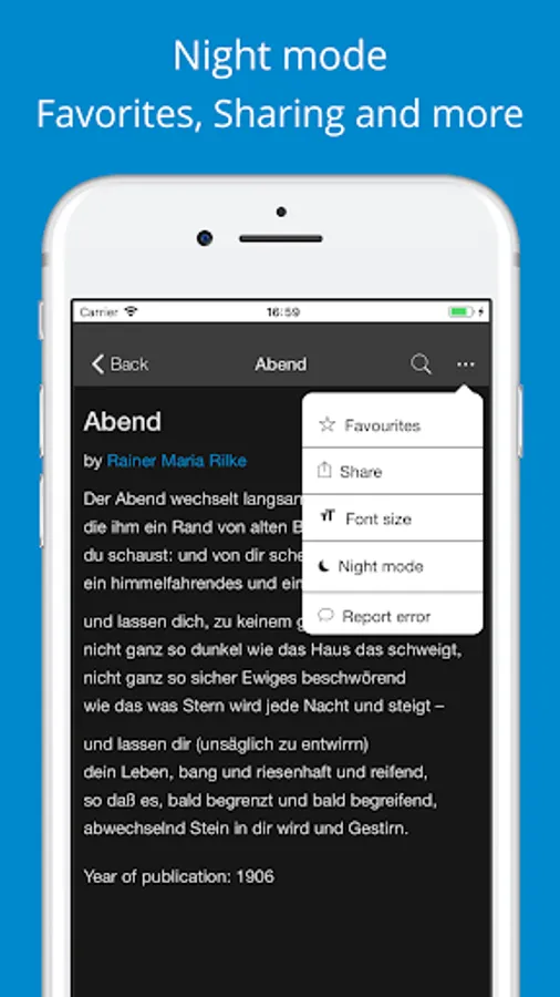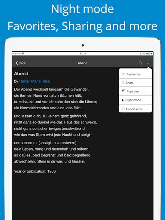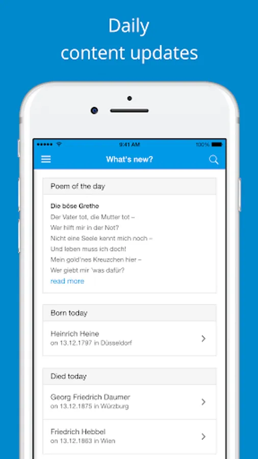We are constantly adding new features to the German poetry app and we’re looking forward to your feedback and ideas for improvements.