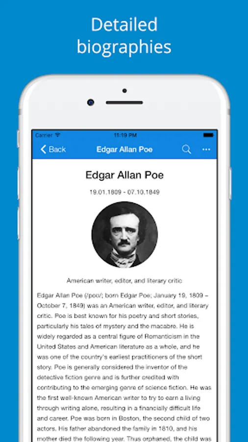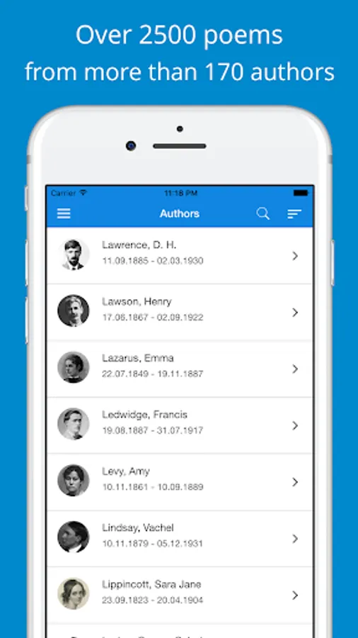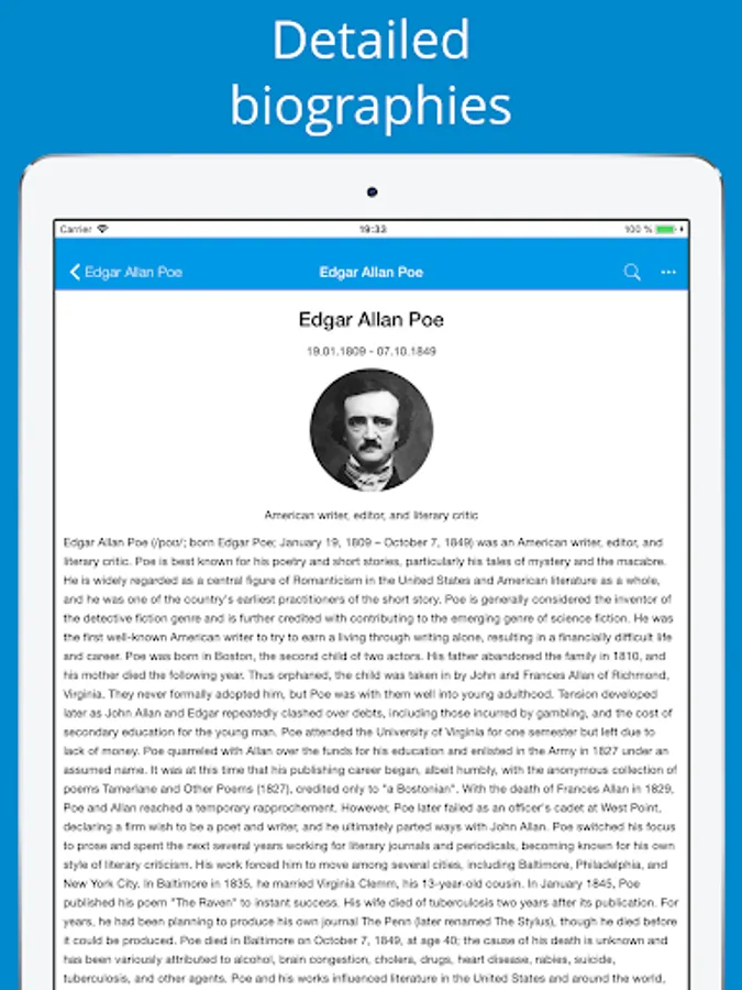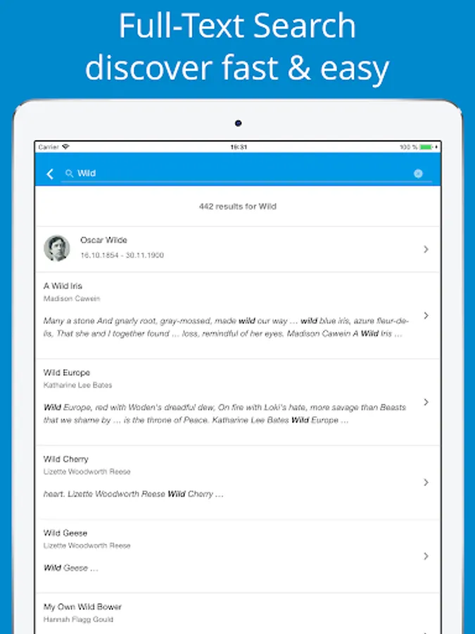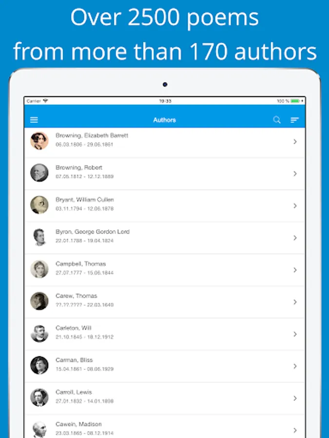 Gain access to over 2500 poems by more than 170 different authors with the English Poetry app.