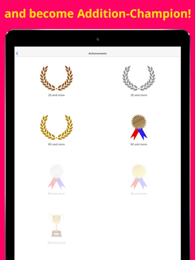 Along the way you receive medals for every achievement. At the end the Addition Cup await you.