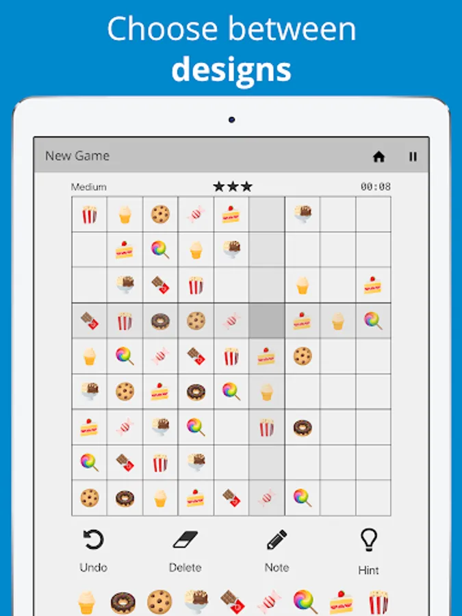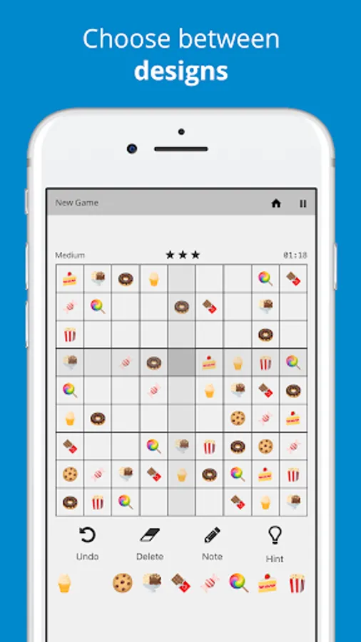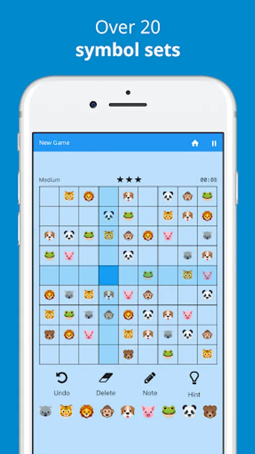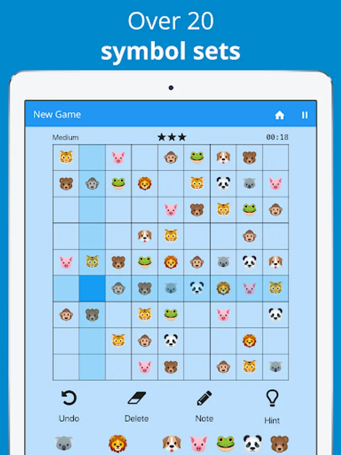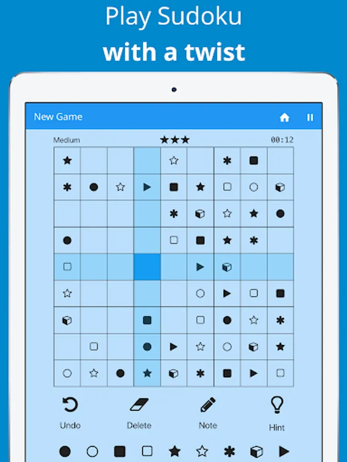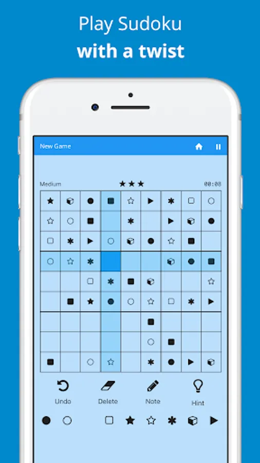 But that's not all: Change the symbol set and play the Sudoku with letters, shapes or colors.