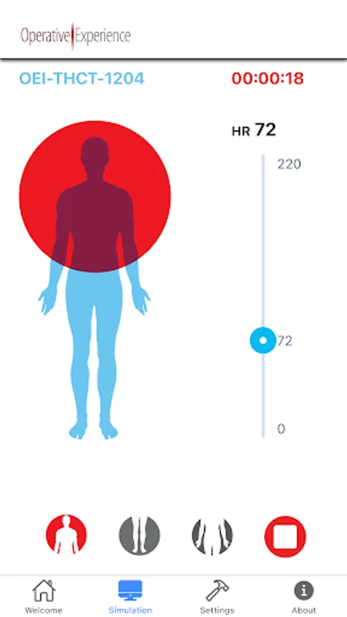The Operative Experience OEI THCT app provides control of the Tactical Hemorrhage Control Trainer Simulator (Male and Female versions)
