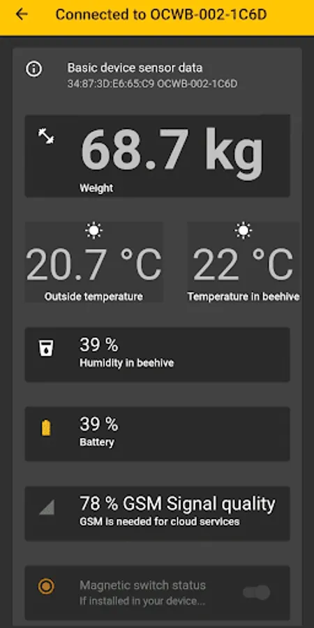 Monitoring of weight growths and drops in beehives remotely, via smartphone. A beekeeper can assess when to process honey or add the supers. He/she also knows, when to feed the bees. If you will buy this device from beehive.operchip.com, this app will give you additional functionality.
