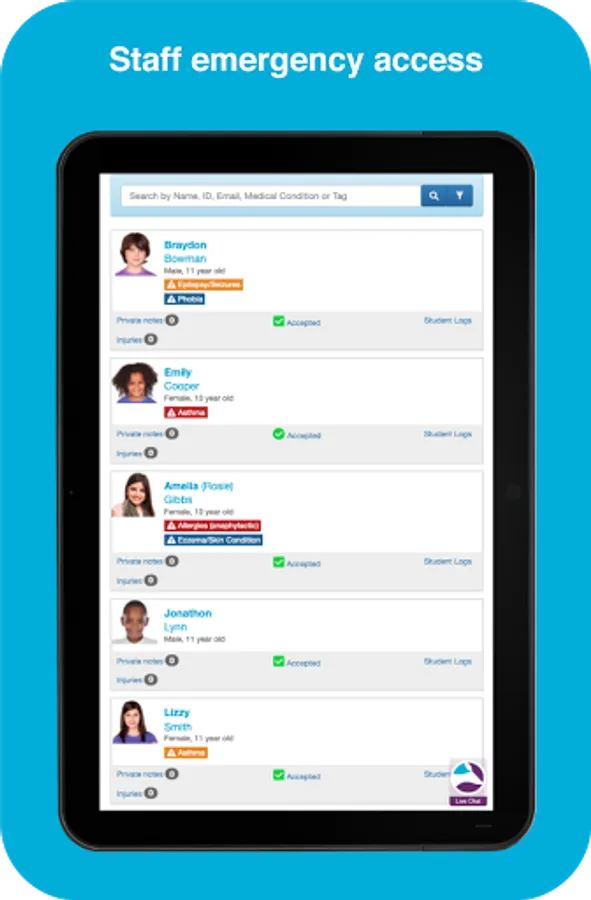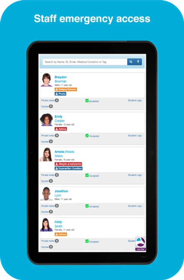 The Operoo Central App securely stores emergency contact and medical data in offline mode so it can be accessed by authorized staff in an emergency, even when offline.