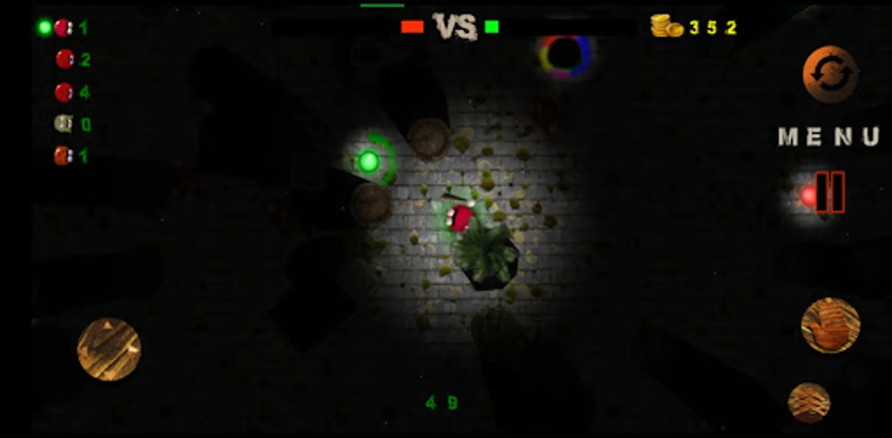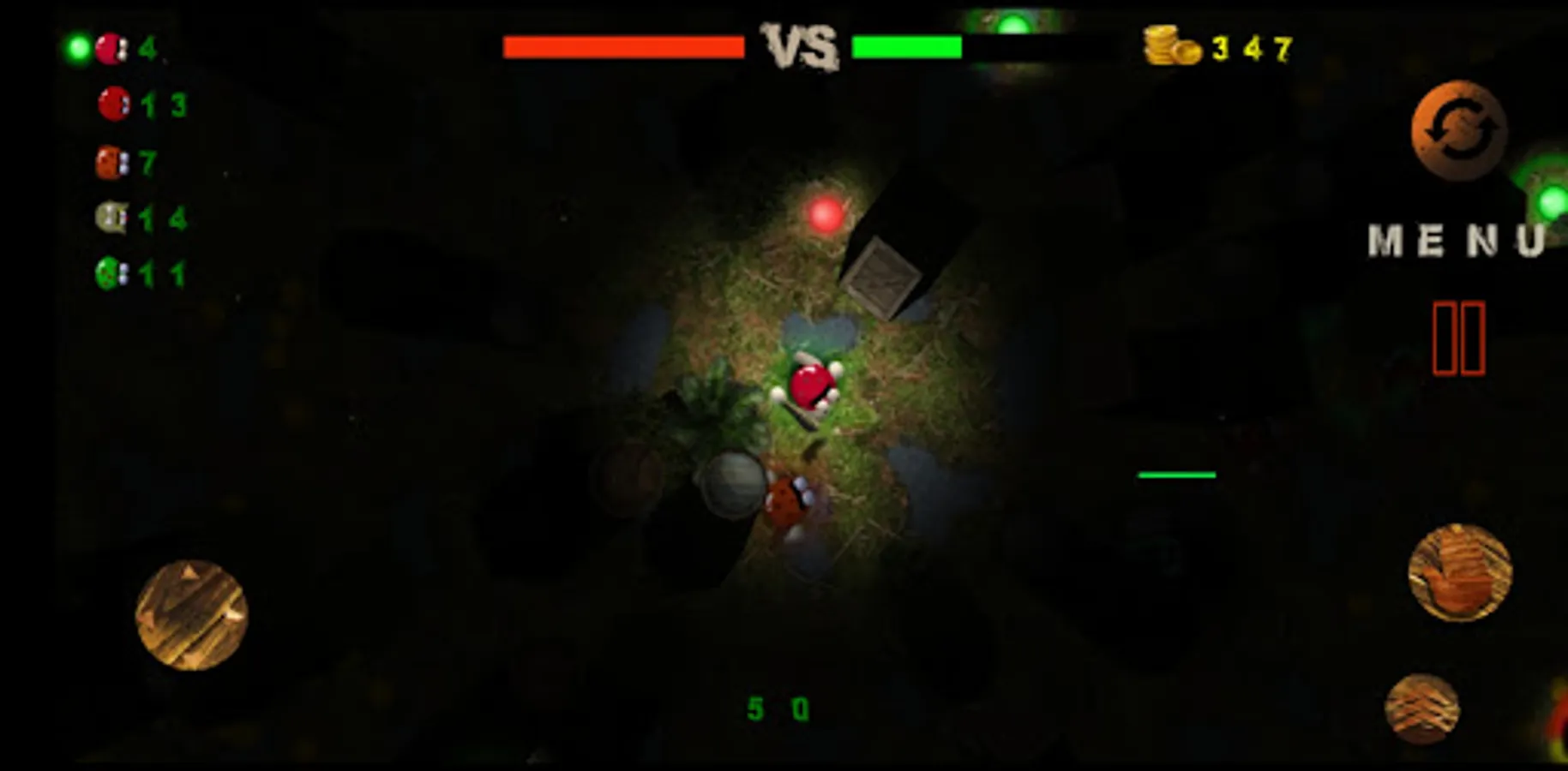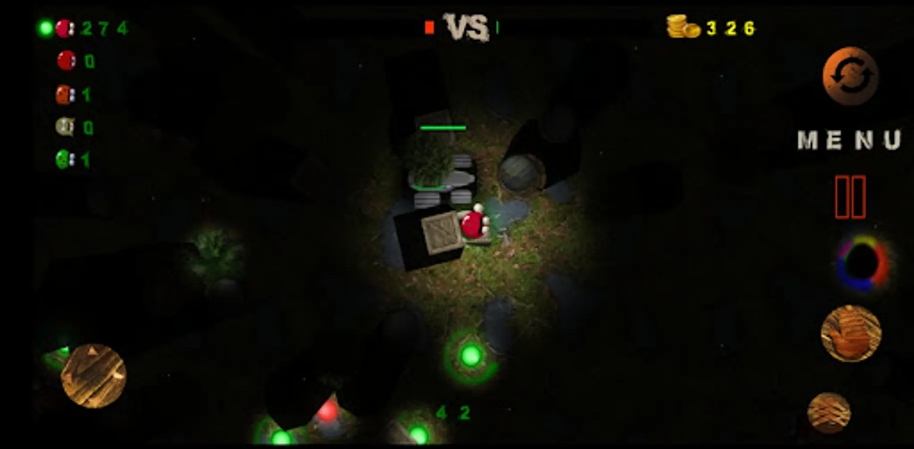 1. A player in a team with bots, against a team of other bots. Whoever fills his strip of tuki faster by collecting balls of tuki is the winner.