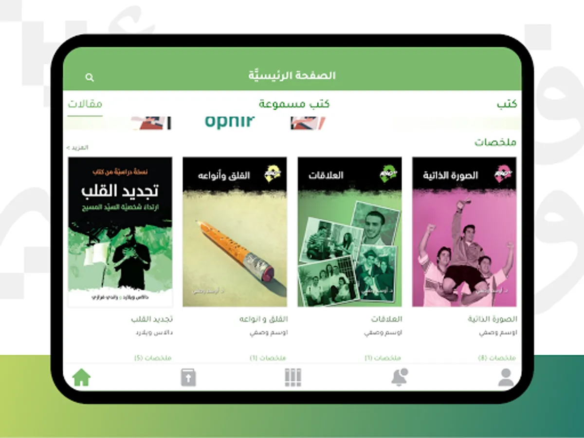 An application that includes Christian books concerned with the development of spiritual life from Ophir publications for printing and publishing, and they come in both electronic and audio formats, and can be downloaded and saved for use at any time, even without being connected to the Internet. The subscriber can read the latest versions of Ophir on the application before the publication of the printed version, and the books on the application are classified into 6 categories to facilitate the search process.