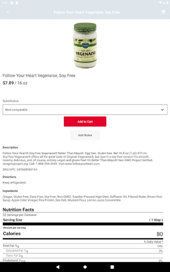 View information about products, including pictures, descriptions, ingredients, instructions and nutrition information.