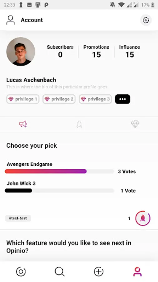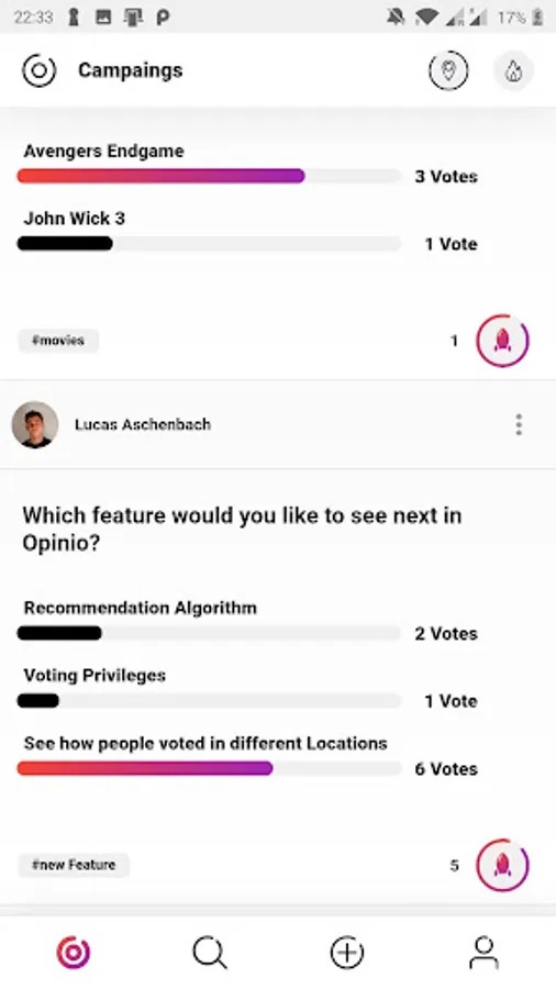 This App actually started out as a fun idea for a One-Week Programming/Design-Challenge on YouTube. Currently, Opinio allows you to create public voting campaigns (even anonymously) to get people's opinions on any subject.