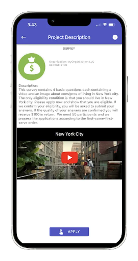 An eligible participant will search the database for the existing opportunities and apply for any suitable project. If the participant is eligible, he/she can complete the tasks, and make real money once the quality of his/her submission is approved by the provider.