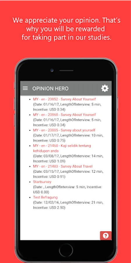 As an OPINION HERO you are rewarded for sharing your opinions. We appreciate your views and we would like to give something back to you for taking part in our studies.
