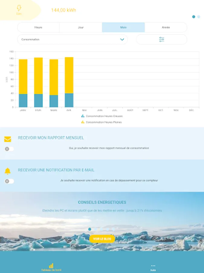 Une appli de suivi conso simple à utiliser pour maîtriser votre consommation d’énergie au quotidien.