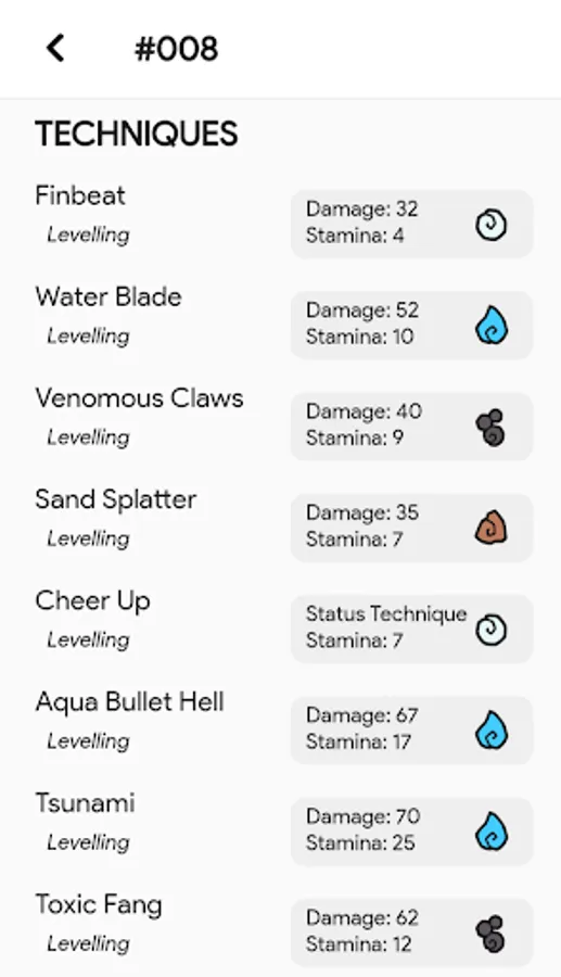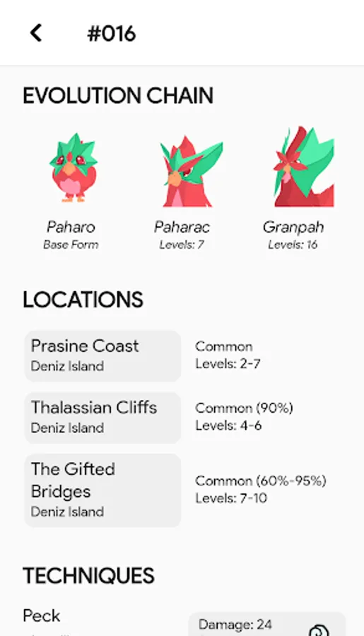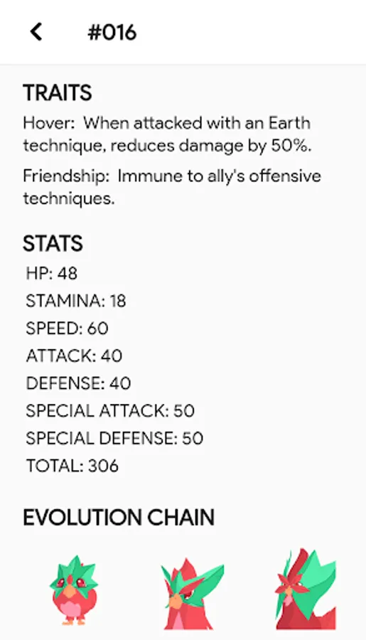 This tiny app includes description, traits, stats, evolution chain, location and techniques of every TemTem.
