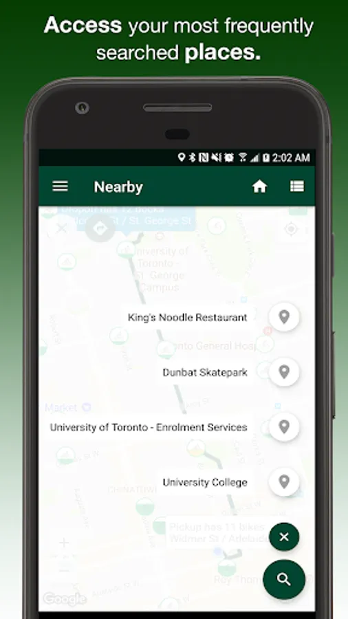 - Trip planner with recent searches - we'll find the closest bike to your current location and the closest station to your destination