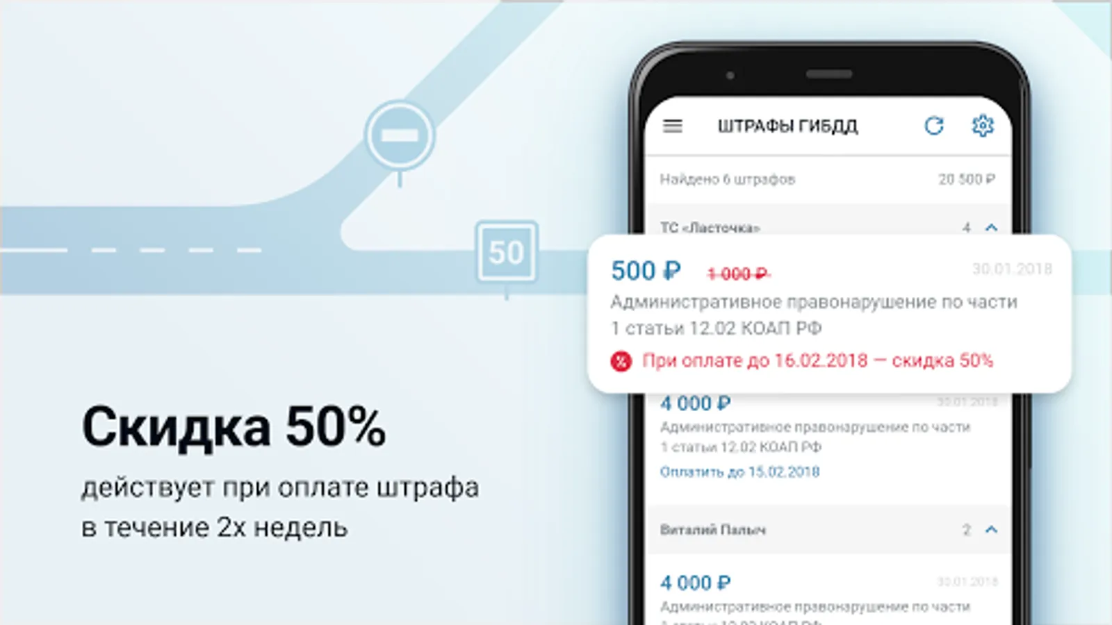 • Receive notifications of new traffic police fines, the expiration of the payment period, the approaching expiration date of the discount.