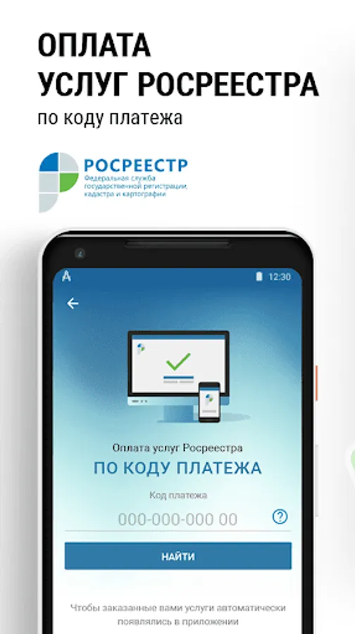To pay for any services Rosreestra must enter the payment code or UIN issued by the service recipient or specify SNILS services. The app will inform about payment options as soon as the accrual will be available for payment: the accrual will be formed in the State of information system of the state and municipal payments. This function will be useful for specialists in the field of real estate, realtors, cadastral engineers, employees of construction companies, banks and all the staff who actively use electronic services Federal Service for State Registration, Cadastre and Cartography.
