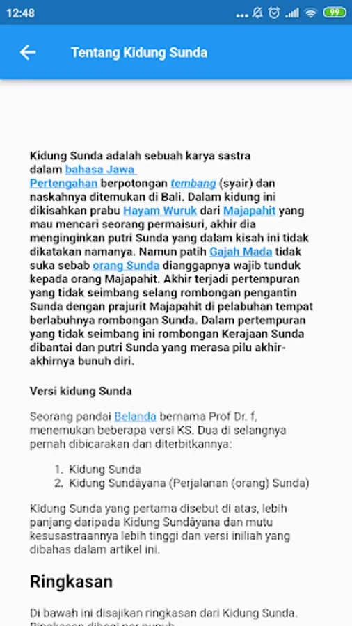 Kidung Sunda is a literary work in the Middle Javanese language in the form of a song (poem) and the script is found in Bali. In this song, it is narrated that King Hayam Wuruk of Majapahit wanted to find an empress, then he wanted a Sundanese princess whose name is not mentioned in this story. However, the governor of Gajah Mada did not like it because he considered the Sundanese to submit to the Majapahit people. Then there was an unequal battle between the Sundanese bridal group and the Majapahit soldiers at the port where the Sundanese group was anchored. In this unequal battle, the Sunda Kingdom group was massacred and the Sundanese princess joined the war and died in the war.