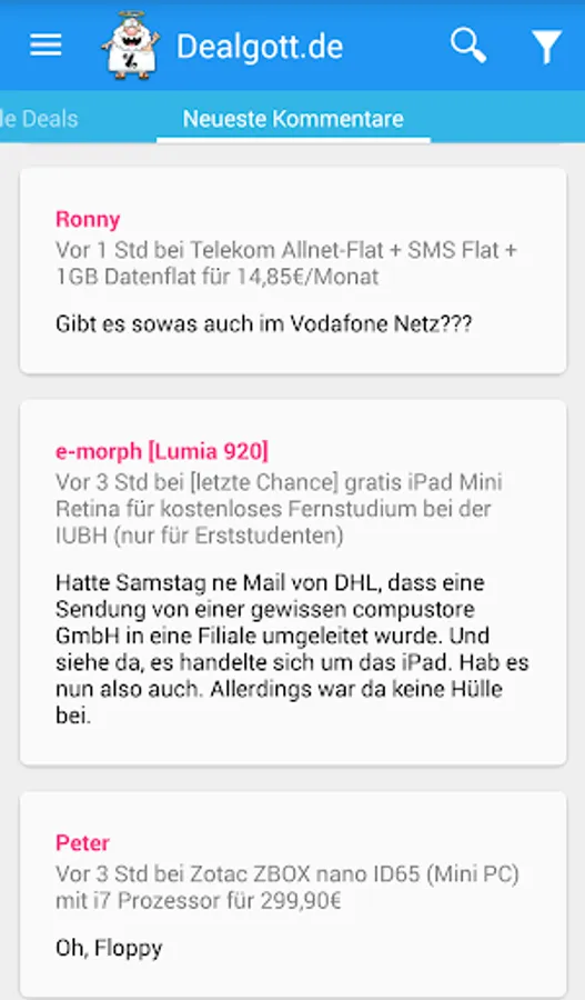 With Dealgott.de - the bargain hunters - you miss no more bargains in the big wide Internet.