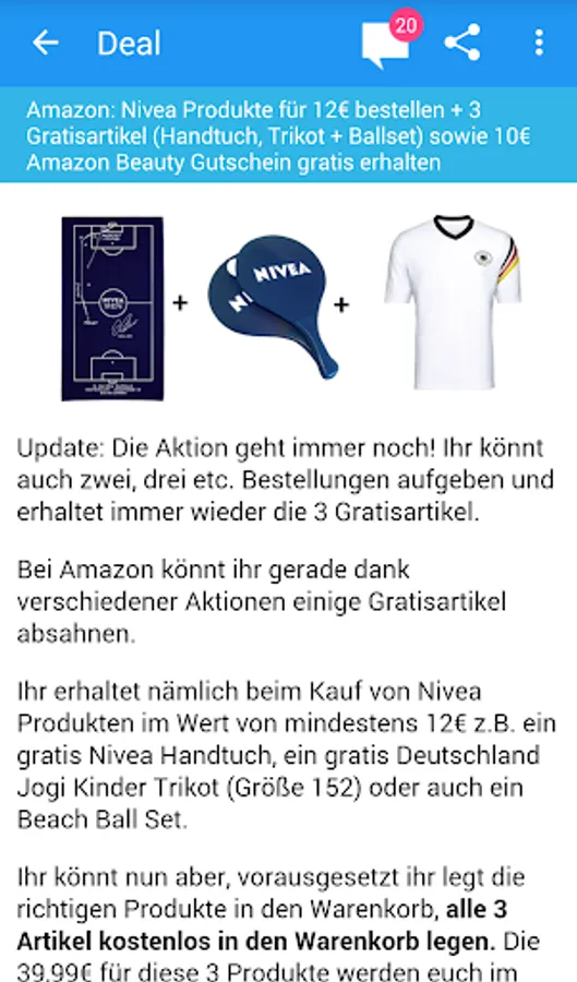 - Share function to tell other like the best bargains (via Facebook, Twitter, Email, SMS, WhatsApp and Co.)