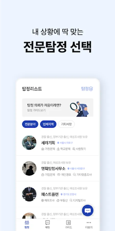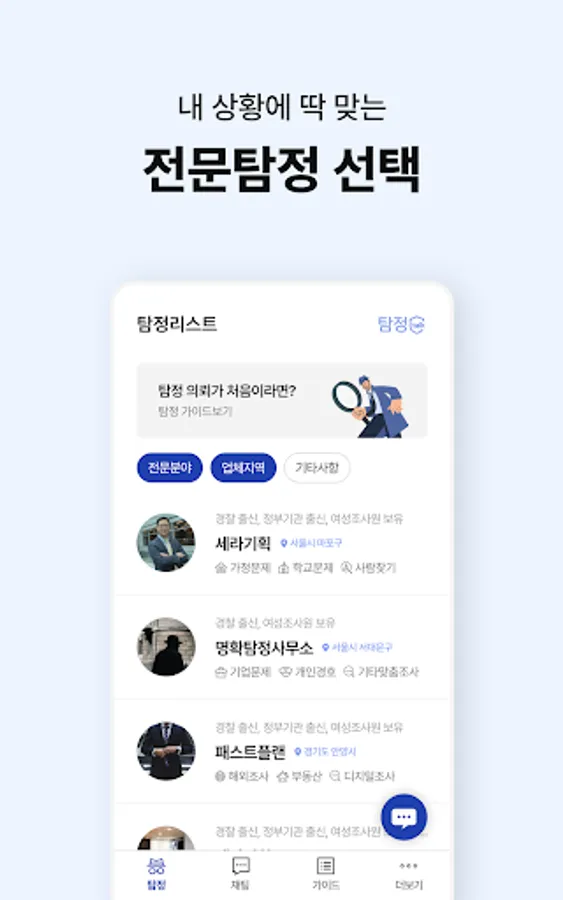 - Select the desired detective company according to region, field of expertise, and experience