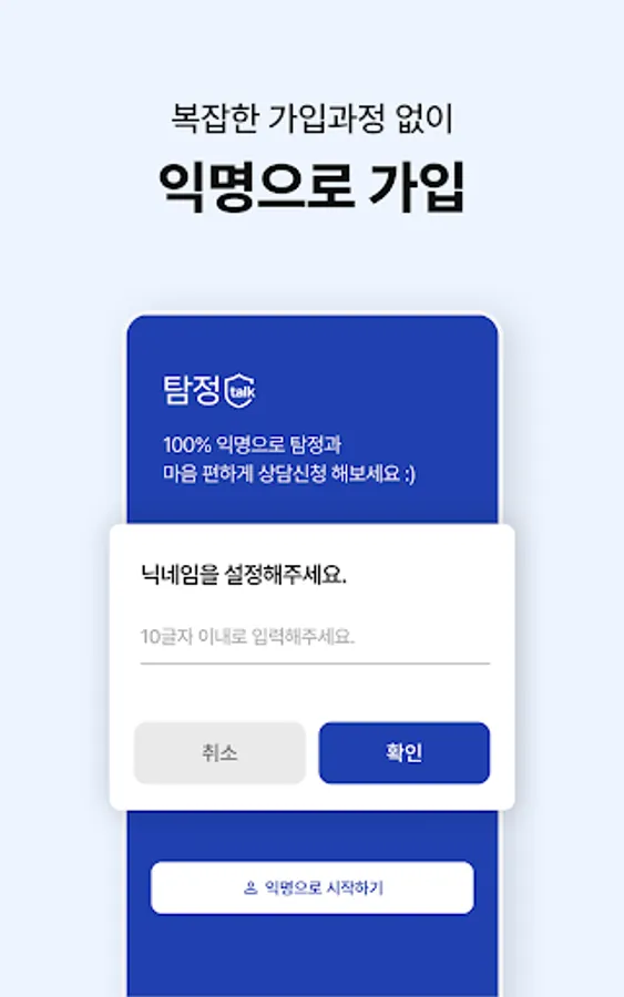 -Consultation is possible in 3 seconds through anonymous chatting without membership registration
