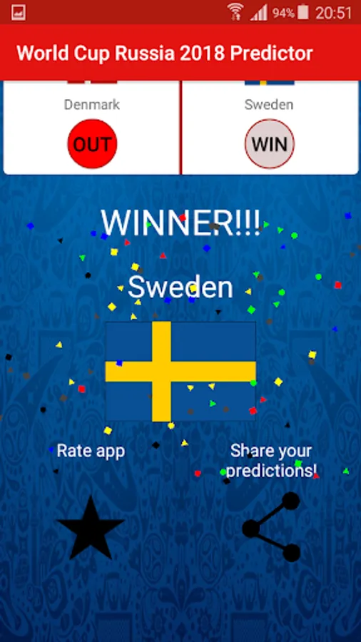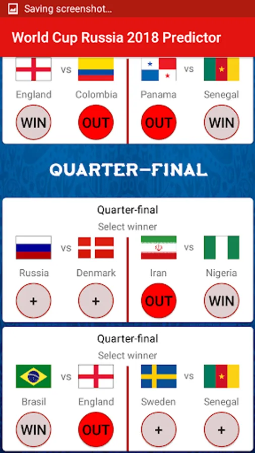 First select group stage 1st and 2nd places, then select round 16, quarter-final,semifinal winners and then you only need to select world cup winner! Later on you can share your predictions!