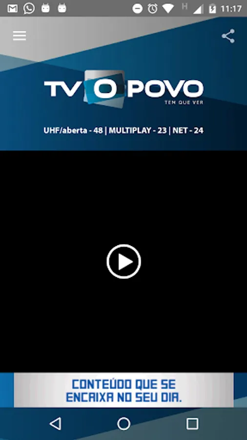 Broadcaster cearense television belonging to the Communications Group and the People affiliated with TV CULTURE. With targeted content, the TV PEOPLE offers its audience quality information, always accompanied by analyzes of the topics covered. Watch TV PEOPLE the open channel 48 (UHF) and also the closed channel 23 (Multiplay). On the internet watch through the portal PEOPLE Online and share on social networks: @tvopovo