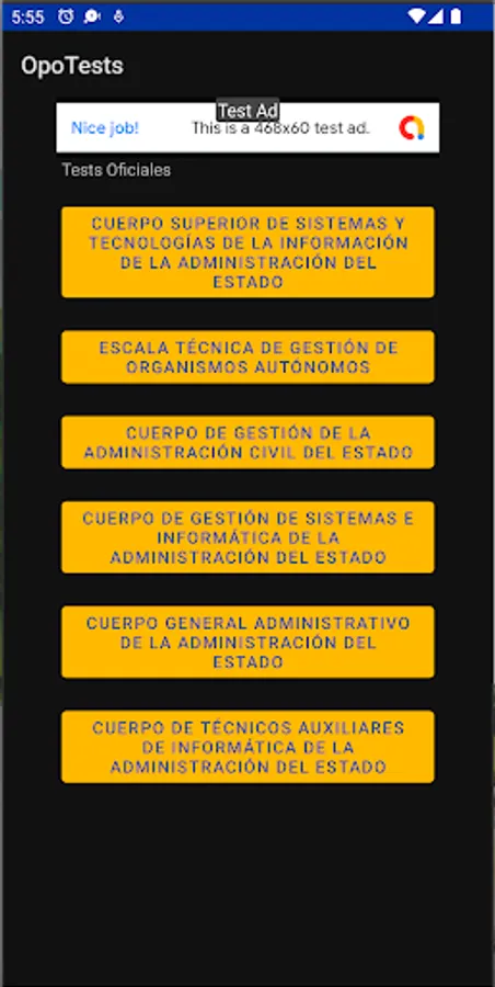 With this app you will be able to prepare the first multiple choice exam of the oppositions to the Superior Corps of Information Systems and Technologies of the State Administration, to the Technical Scale of Management of Autonomous Organisms, to the Management Corps of the Civil Administration of the State, to the Systems Management and IT Corps of the State Administration, to the General Administrative Corps of the State Administration and to the Corps of Auxiliary IT Technicians of the State Administration. Also, from our base of questions, you will be able to prepare other analogous oppositions for Autonomous Communities and Local Entities.