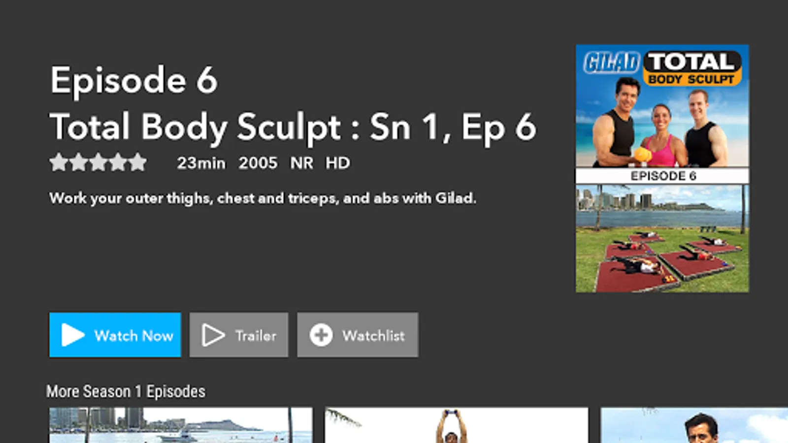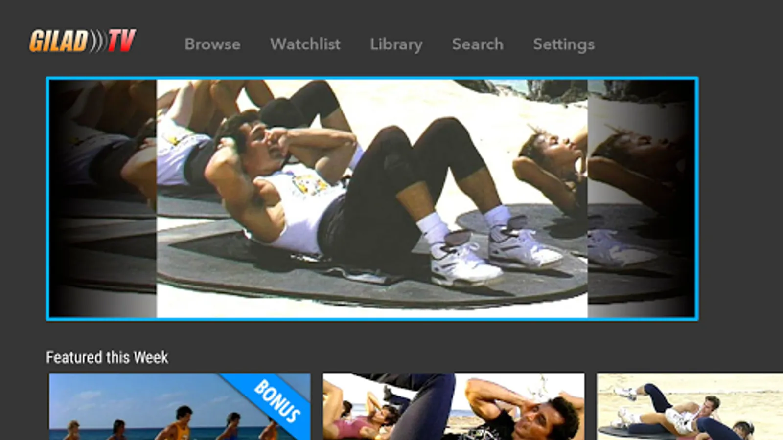 Gilad TV brings Gilad to your computer, connected TV, mobile phone or tablet, virtually anywhere you want him to be. You can exercise with Gilad any time you want. Just log in and choose between Bodies in Motion, Total Body Sculpt, hand picked selections from Gilad's extensive collection of videos and other special features.