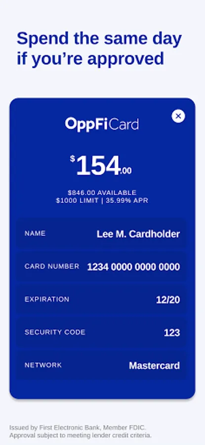 OppFi Card is issued by First Electronic Bank, Member FDIC.