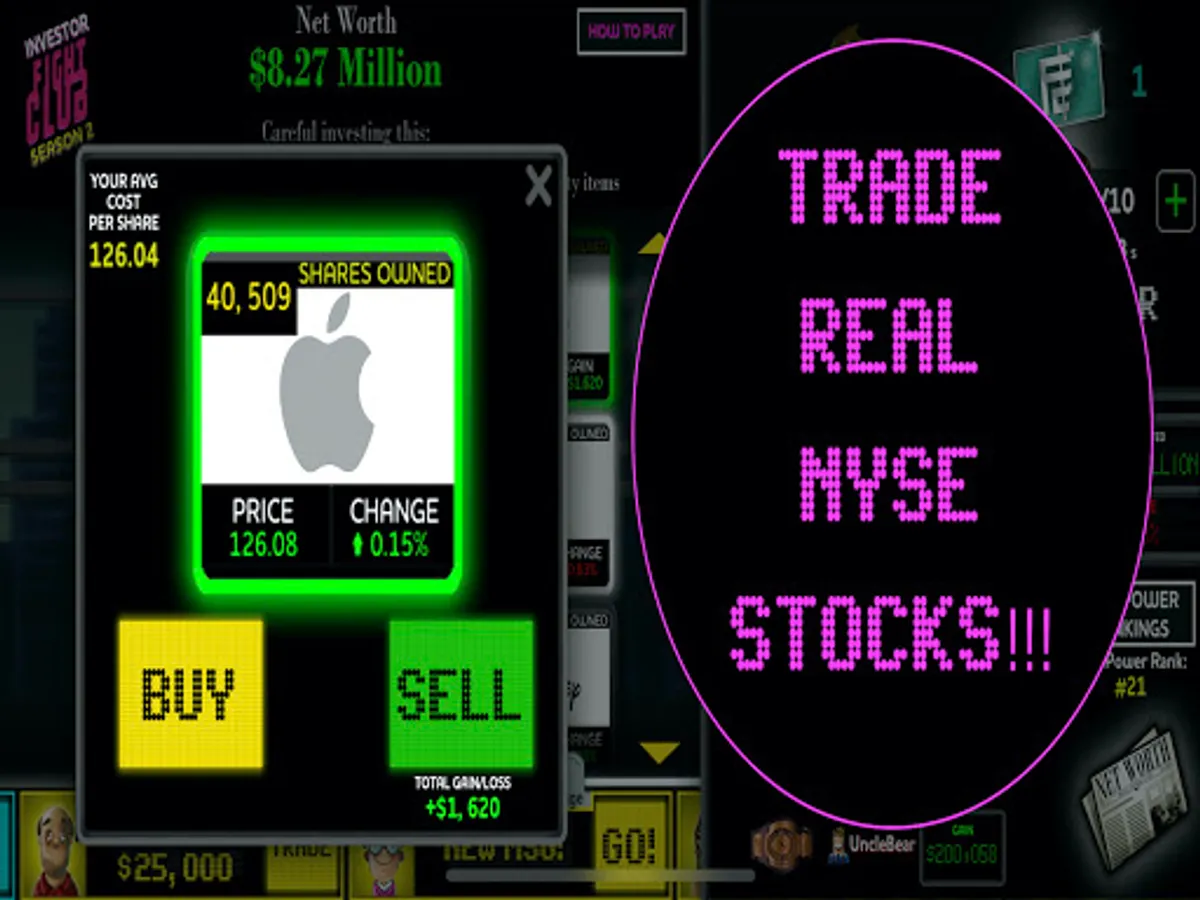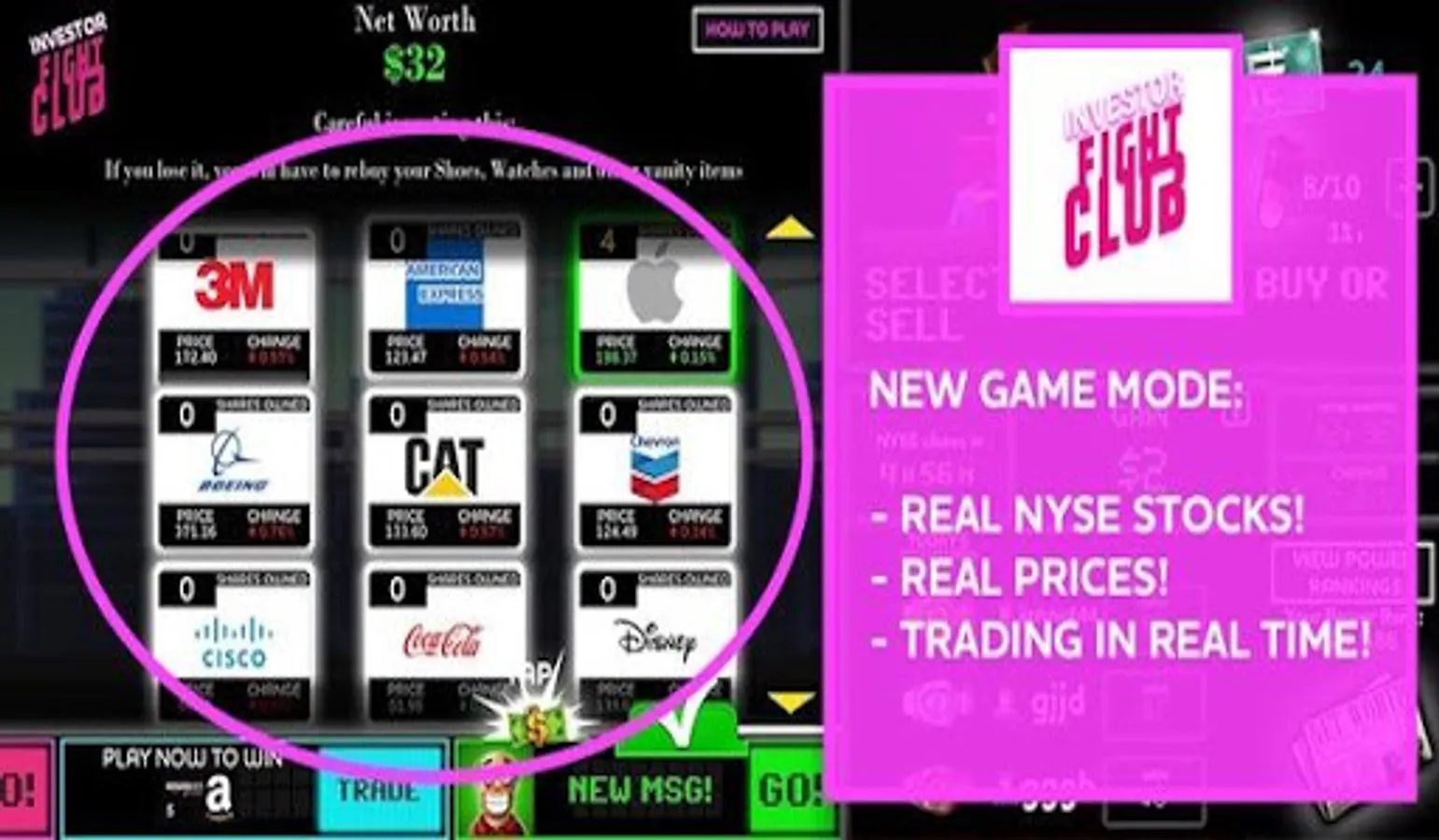 - 'Investor Fight Club' Mode: Buy and sell REAL DOW 30 stocks in real time (available during NYSE market hours only)