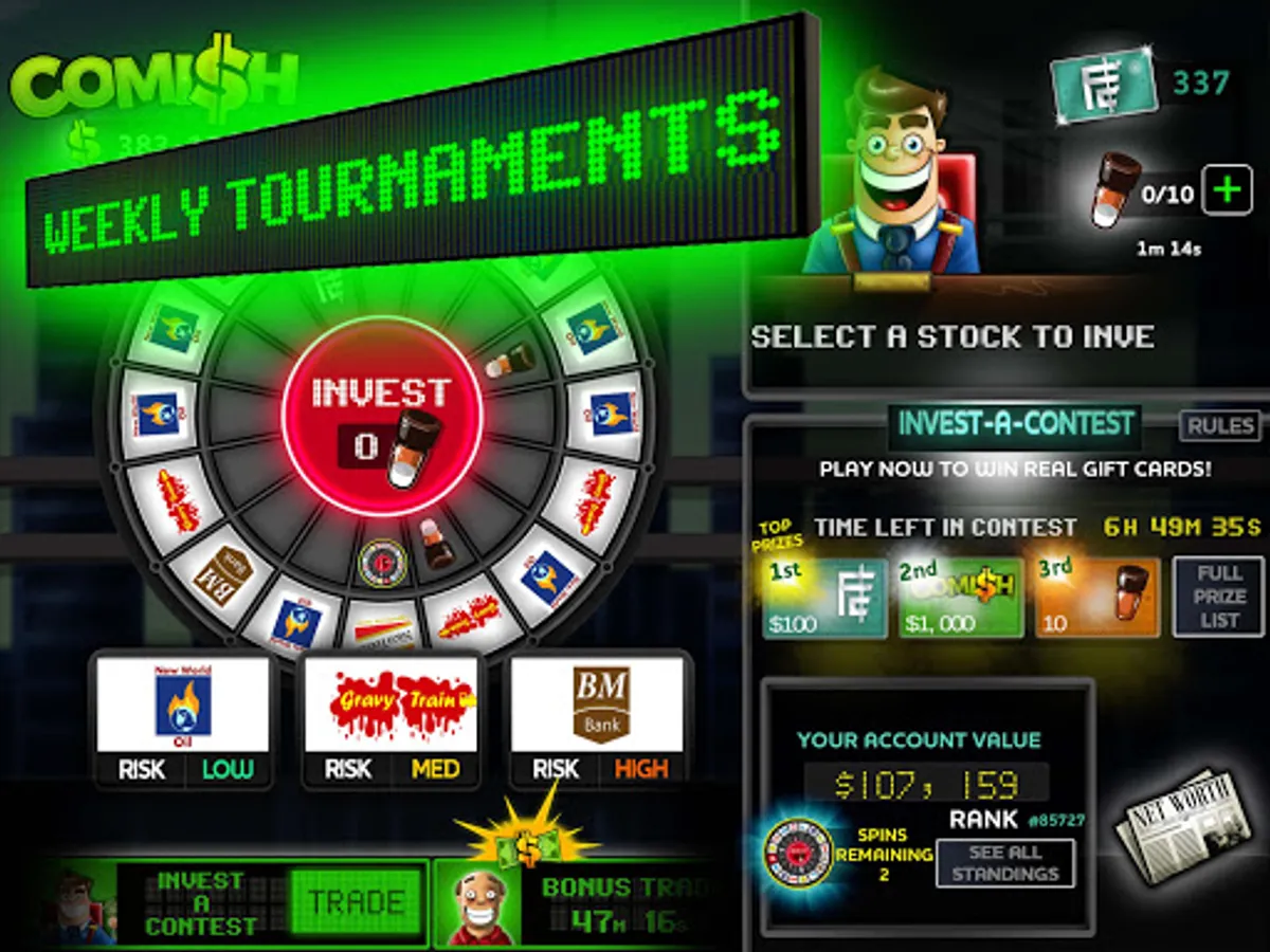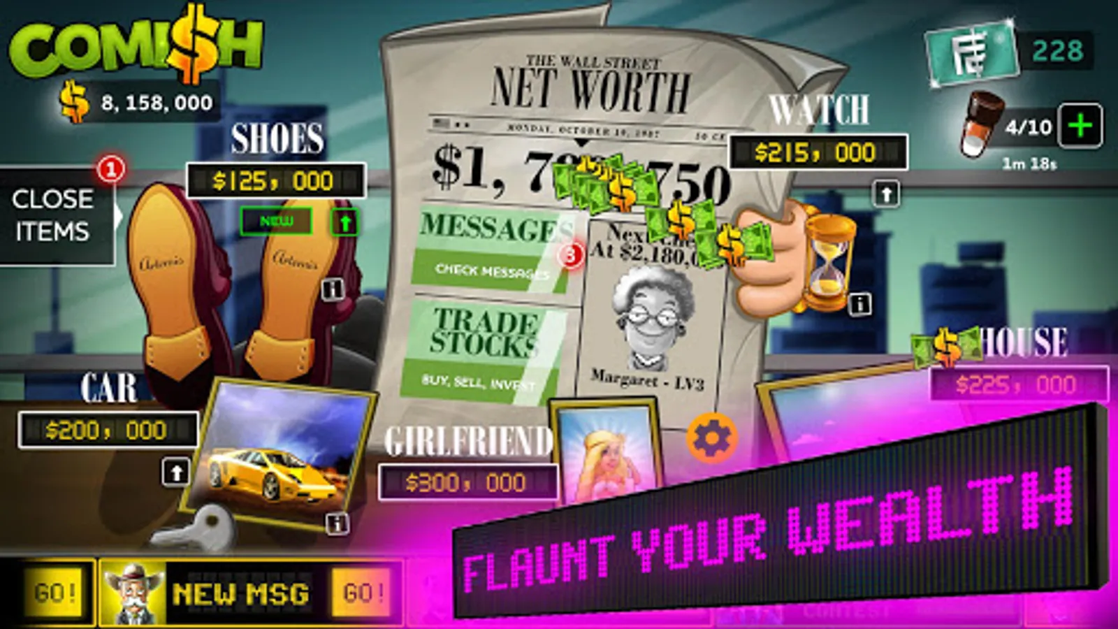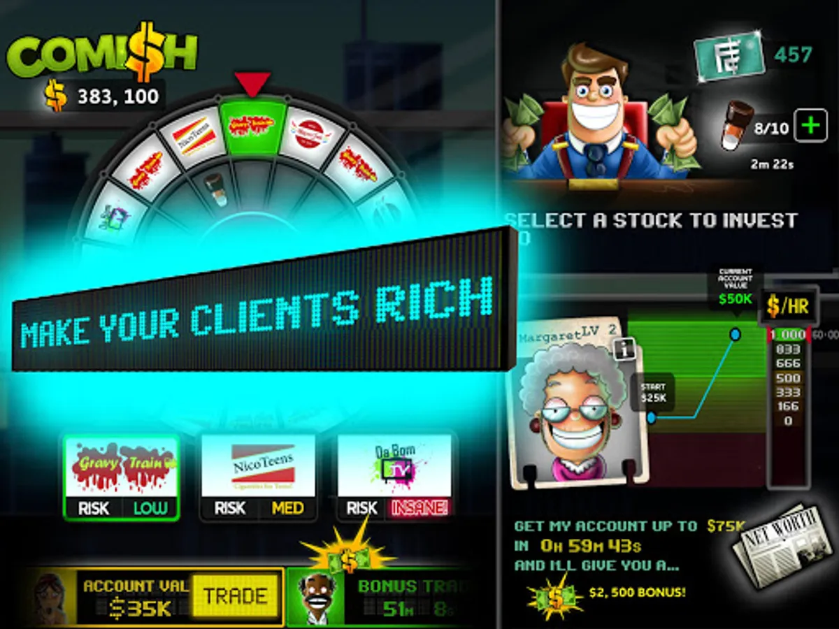 - 'My Stocks' Mode: Buy and sell stocks in 11 fictional (parody) companies