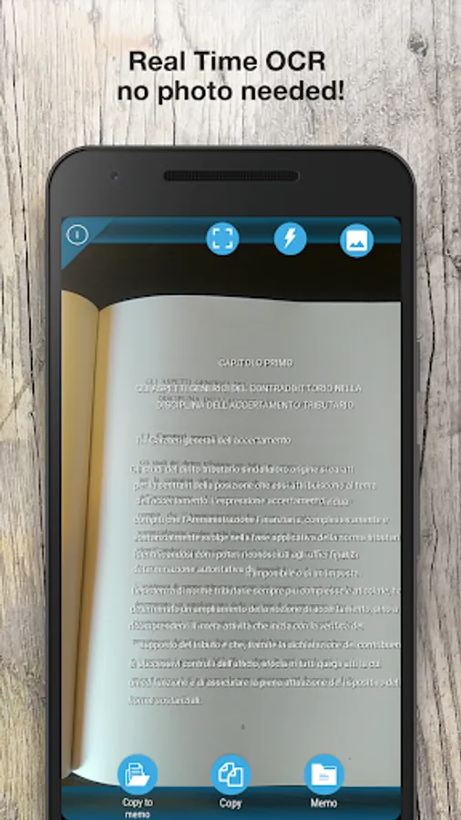 - Copy to memo: when you tap this button the text recognized will be added in a document. If the document is not empty, the text will be added below.