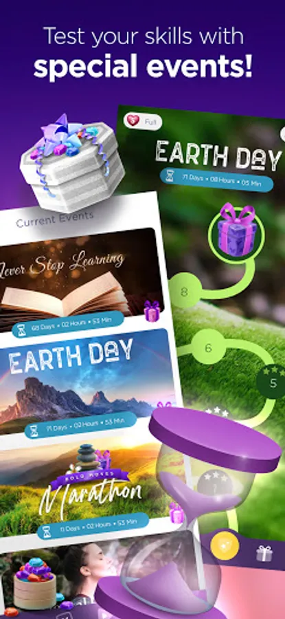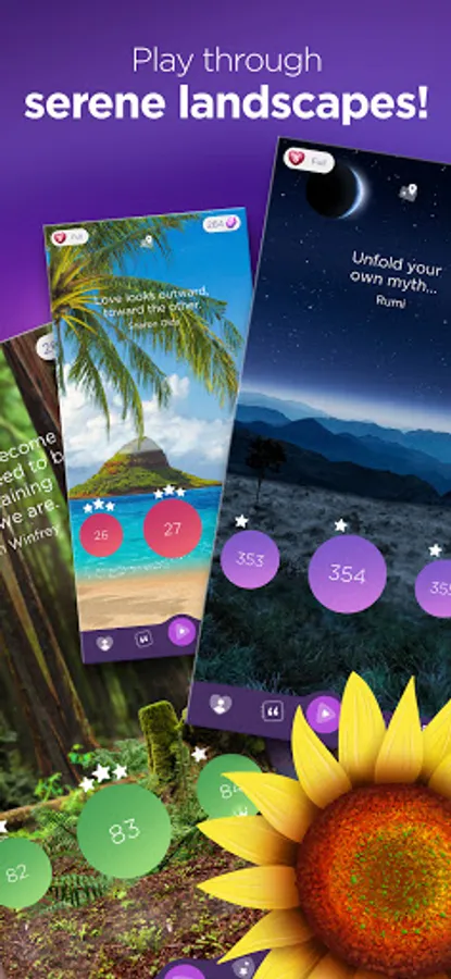 Match 3 colors to collect letter tiles, break through obstacles, and solve the phrase to find inspiration from motivational quotes and positive affirmations. Earn rewards and boosters, progress through chapters of puzzles, and win limited-time events.