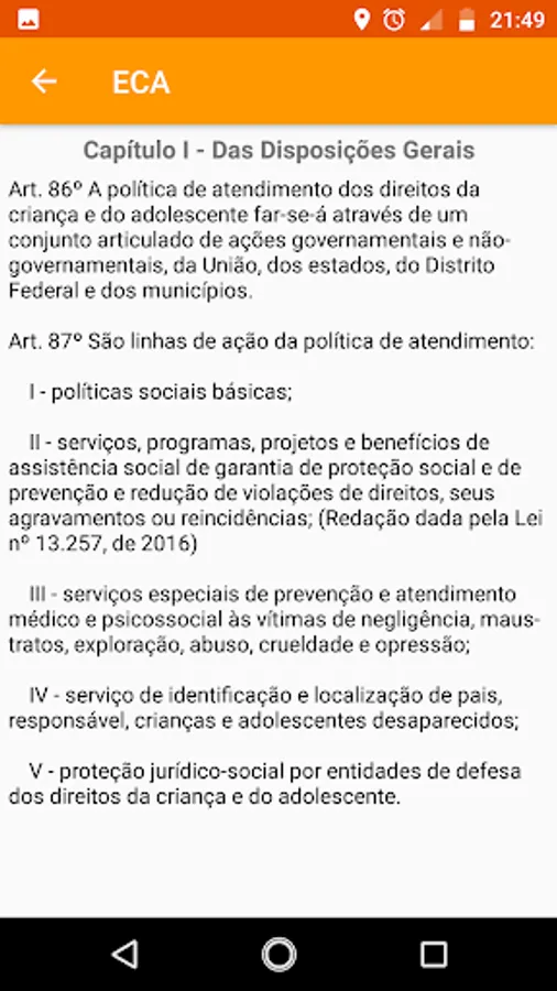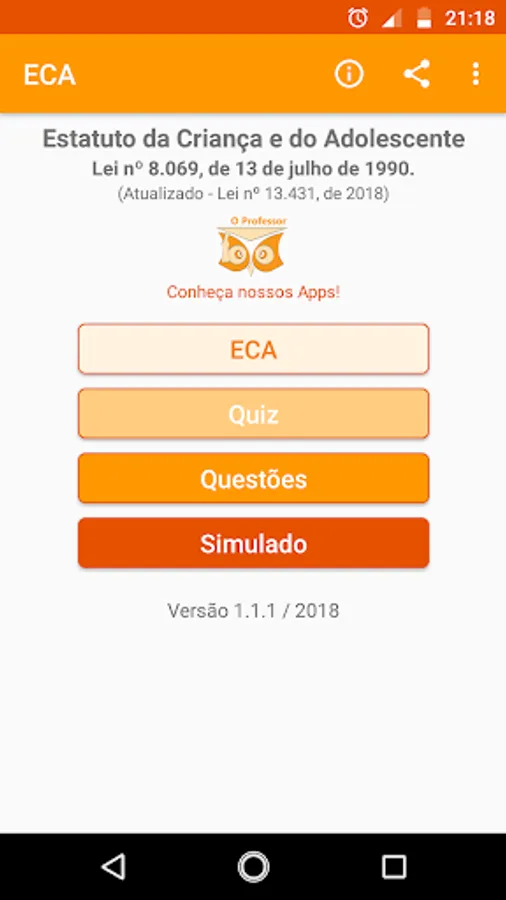 Professor ECA is an application for mobile devices that aims to make available the Statute of the Child and Adolescent to teachers who intend to hold public or private competitions.