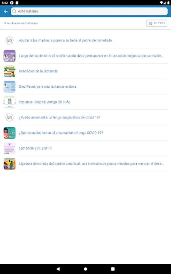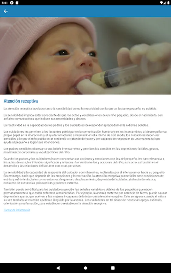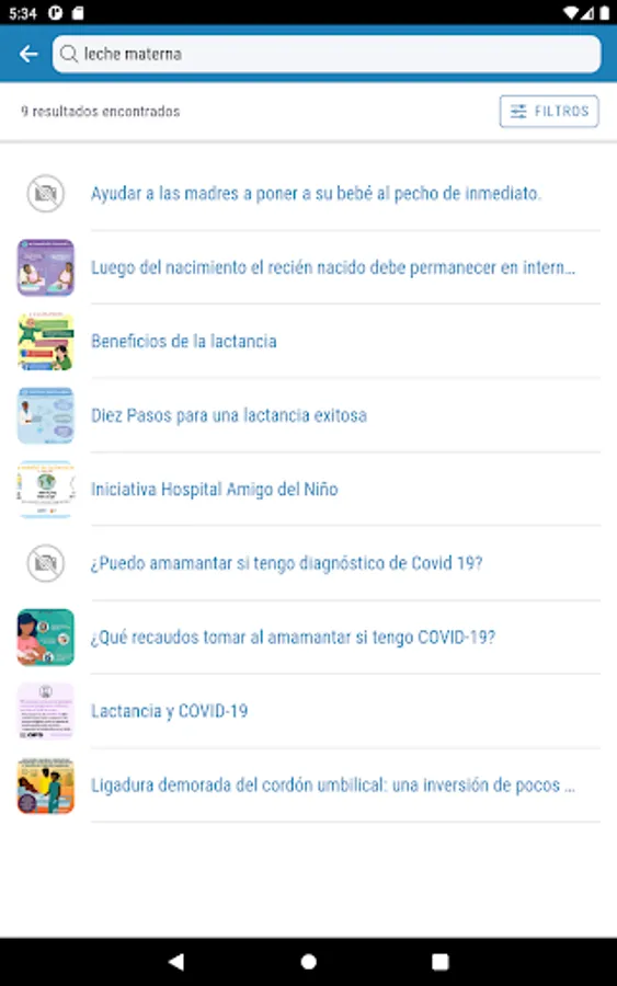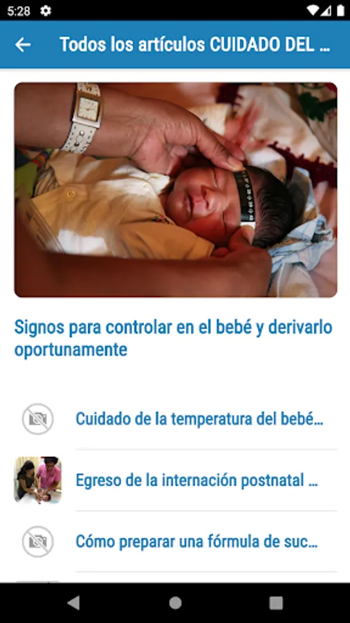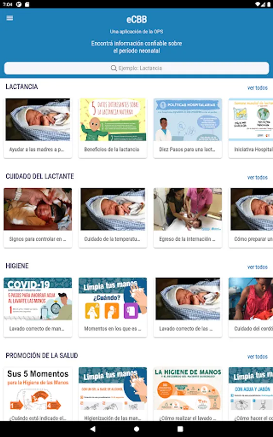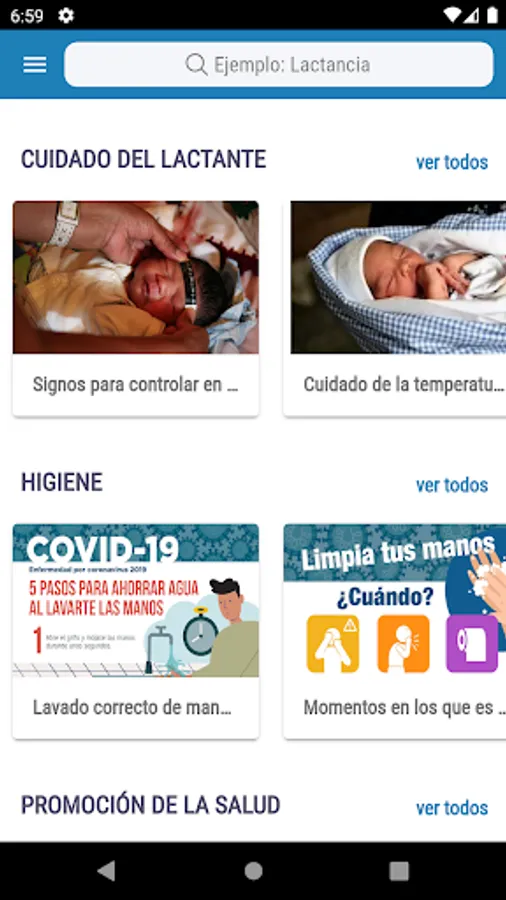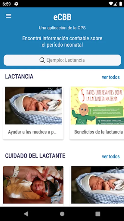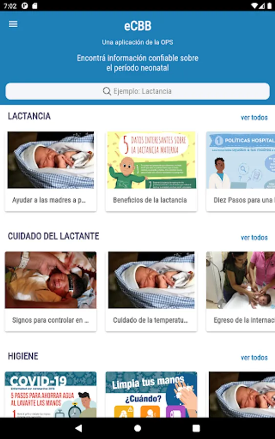 The topics presented, which include information in the form of text, videos, infographics, recommendations, images, news, are grouped around six main categories: breastfeeding, infant care, hygiene, health promotion, growth and development and frequently asked questions. . In addition, it has thematic labels such as vaccines, prematurity, infant, among others. The topics include information of interest to families, caregivers, and health teams on newborn care, the stages and changes that will occur, the needs and signs that require specific care and interventions, as well as common health problems.