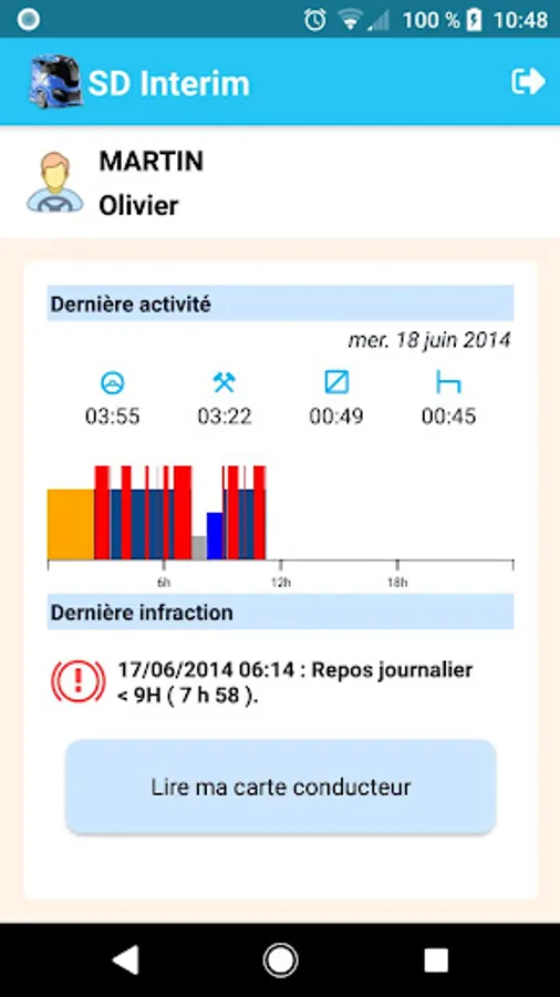 This application allows you to read a driver card and then make it available for a temporary employment agency.