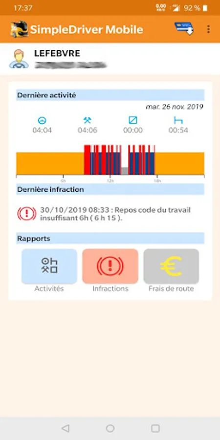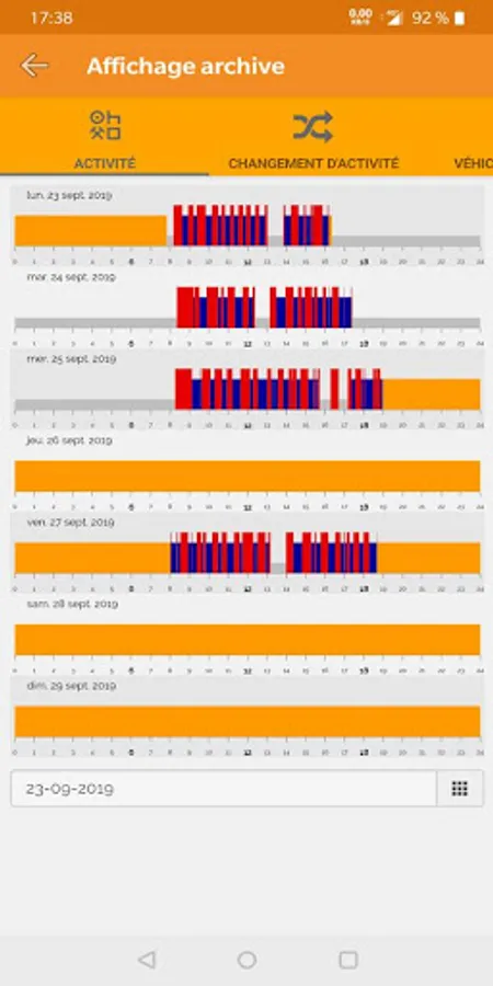 Access all the additional data of the driver card: change of activity, vehicles, anomalies.