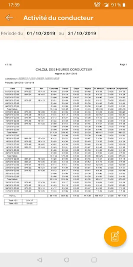 Complete analysis of the driver's activity - driving hours, overtime. at 25 and 50%, night hours ...