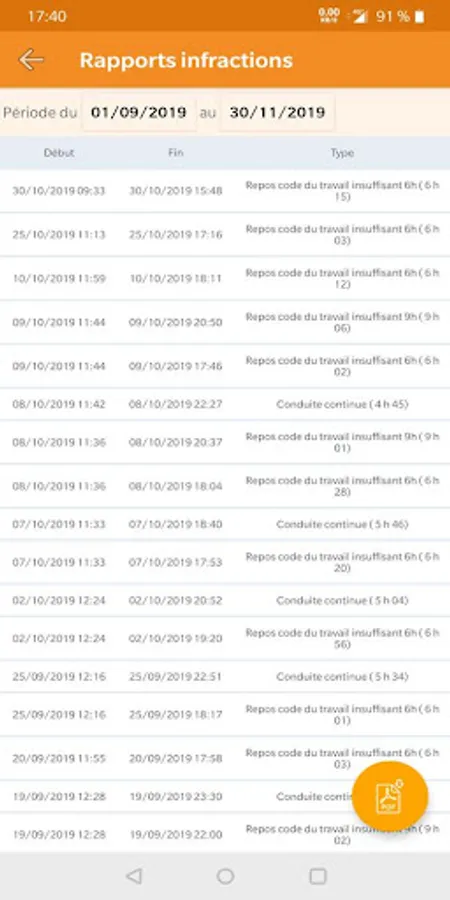 Control of CSR traffic violations - continuous driving, violation of actual work ...
