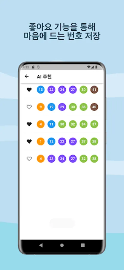 - Press the heart on the number recommendation result screen to display “Like” and check it at any time in the Like tab of the main screen