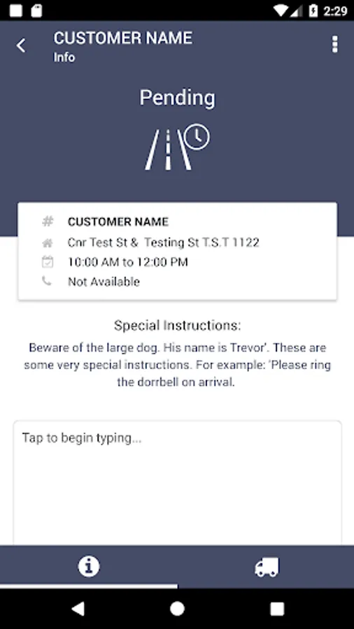 Let's Bega drivers record real-time confirmation for customer deliveries. Includes GPS tracking, delivery time stamp, customer sign-on glass, photographic evidence, service incidents, product quantities and more... Integrates into Bega's online real-time customer track and trace visibility system.