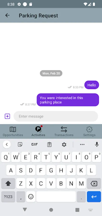 The parking spot holder you have chosen will contact you and you can finalize the terms of the transfer of the parking spot directly from iPap.