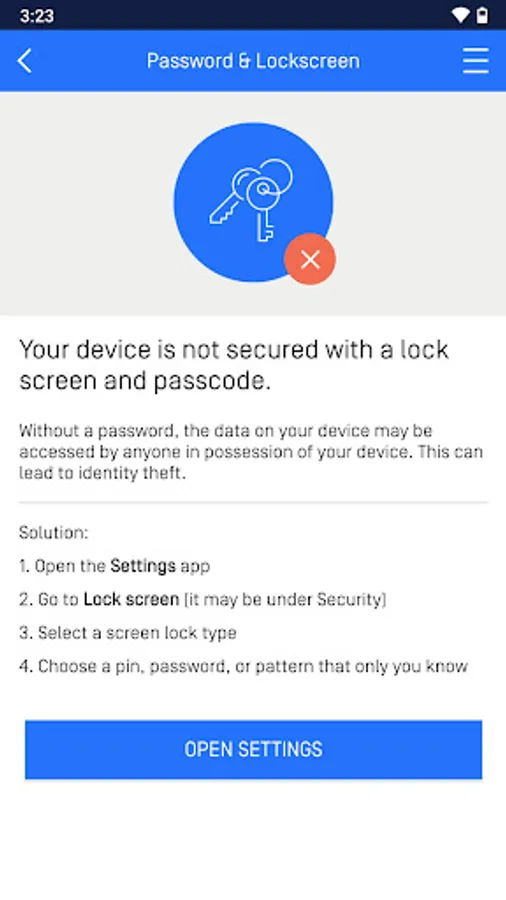 Security features are changing all the time, and keeping up with them can be difficult. OPSWAT Mobile App performs a rapid audit of common security settings and provides you with a report including your "Security Status," information on security issues on your device, and clear instructions on how to fix them. You don't have to be an expert to feel confident that your data is secure.
