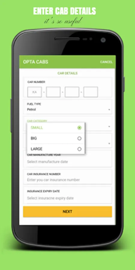 Select from the list of simple, but the exhaustive number of cabs. Options of cabs available are