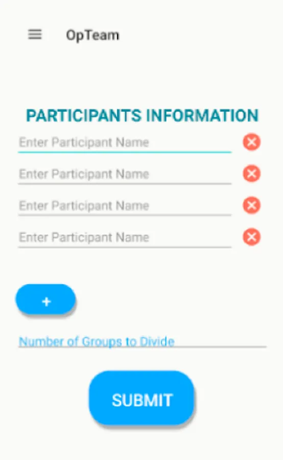 OpTeam is an application which is used to make groups on the basis of participants.