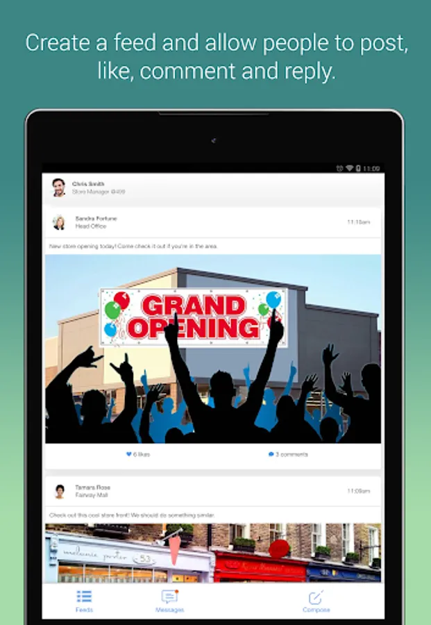Holler allows Opterus users to chat on their mobile devices and share pictures and status updates in a feed. People can post, like, comment and reply to feed posts. People can also create one-on-one as well as group chats, name their chats, add people, and chose to leave a chat. Your Opterus Administrator can also set permissions to decide who can use the chat app.