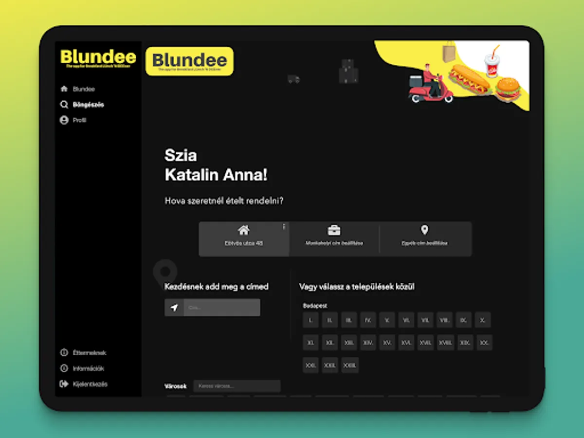 Blundee is an initiative with which we are reforming the field of gastronomy in Hungary not only with food delivery and table reservations, but also with complete digitalization developments inside and outside restaurants.