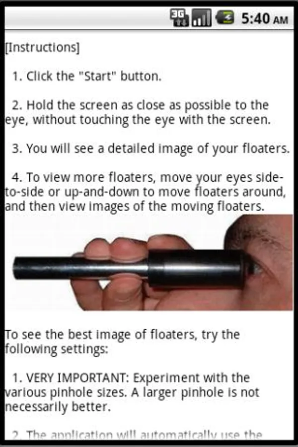 If you suffer from eye floaters, this application can help you see a detailed and magnified image of floaters that exist inside your eyes.