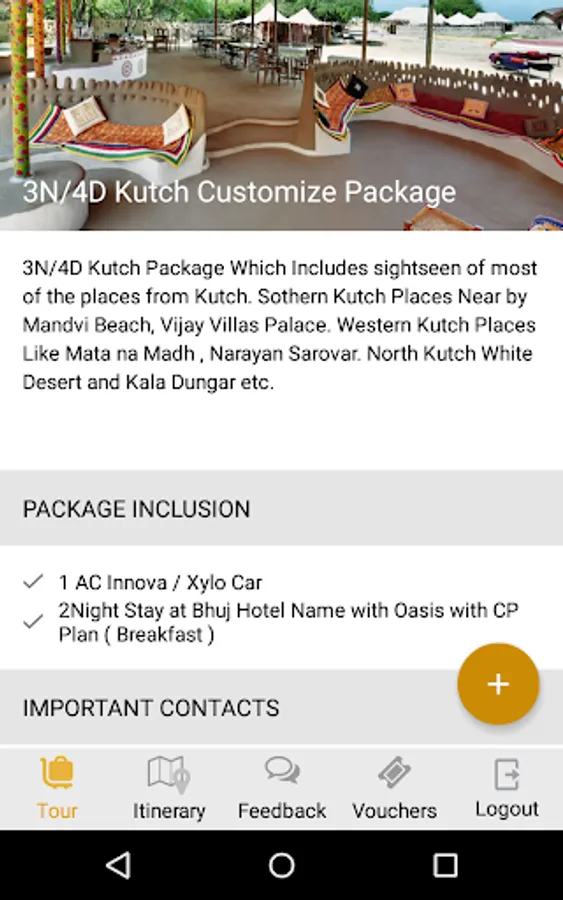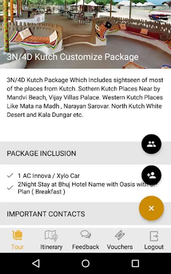 This is exclusive application design by Kutch Tour Guide for their customers, who want to travel and choose Kutch Tour Guide as Travel partner during their Visit to Kutch. The application is like your personalized tour operator. The app collects all the data of your tour and serves it to you at one place.