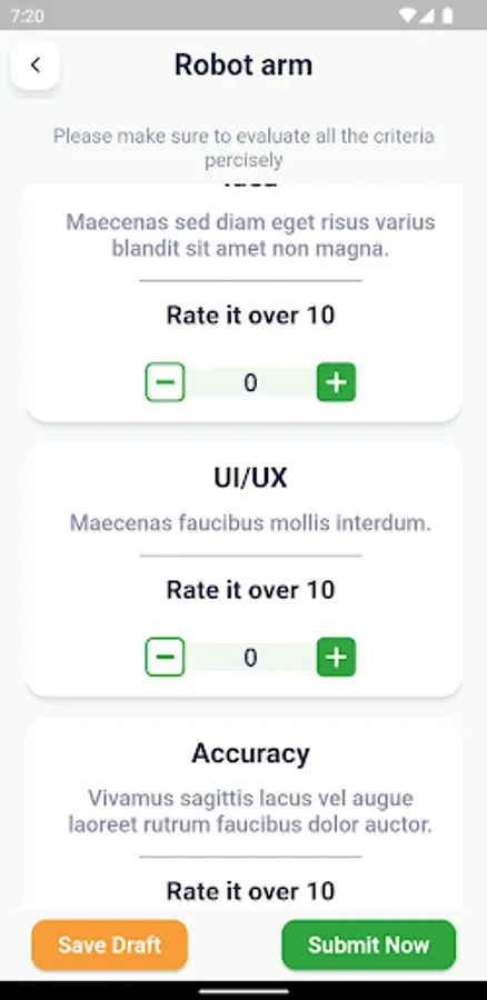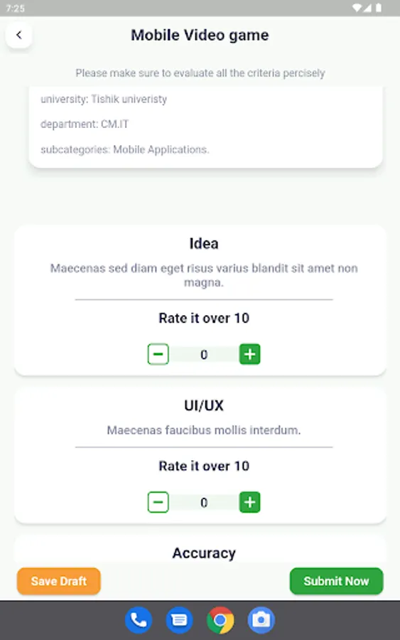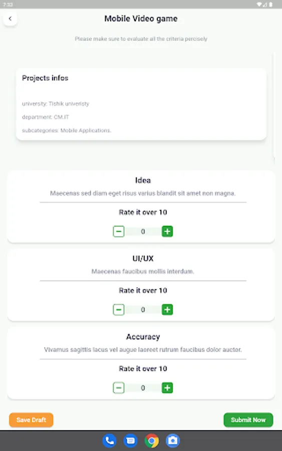 The app ensures that the evaluation process is fair, accurate, and transparent. Judges can evaluate the projects from anywhere, at any time, making the process convenient and efficient. The data collected is aggregated to determine the overall winner of the competition, ensuring that the best project is recognized.