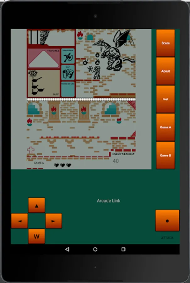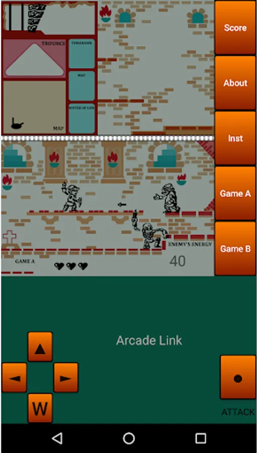 Each time Link is attacked by the enemy, his life (displayed by hearts) goes down by one. When his life reaches zero, Link runs out of energy and that's the end of the game.